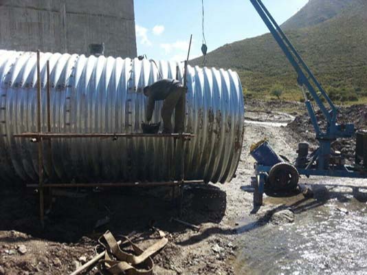 在某些運(yùn)輸不太方便的地方可以直接在涵錒長度方向進(jìn)行鋼波紋涵管的拼裝。