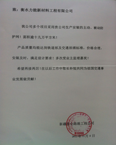 我公司多個(gè)項(xiàng)目采用貴公司生產(chǎn)安裝的主動(dòng)、被動(dòng)邊坡防護(hù)網(wǎng)!面積逾十幾萬平方米!
