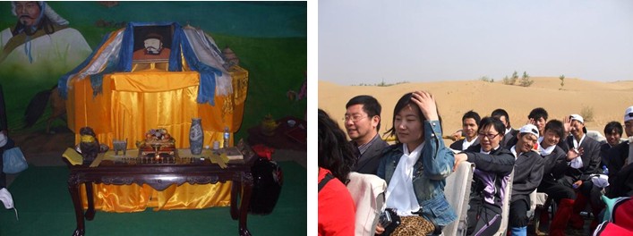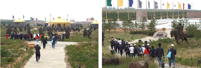 隨后我們進(jìn)入了成陵中最壯觀的蒙古歷史文化博物館,參觀長達(dá)206米的《蒙古歷史長卷》油畫是世界上最長的油畫和各種蒙古用品模型。