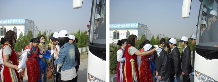 窩闊臺沙漠旅游景區(qū),迎接我們的是熱情的蒙古儀式下馬酒、敬獻(xiàn)哈達(dá)。在嘹亮的祝酒歌聲中所有員工都非常豪爽的干掉碗中的酒,由美麗大方的蒙古族姑娘獻(xiàn)上潔白的哈達(dá)。