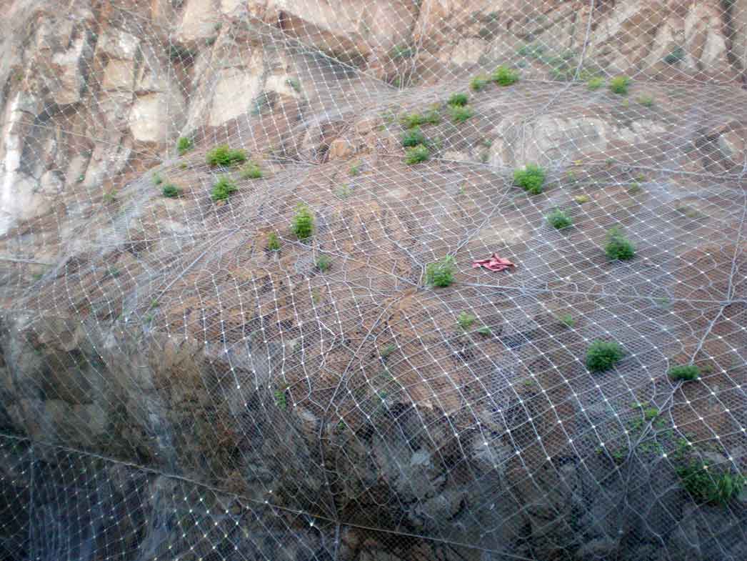 柔性鋼絲繩網(wǎng)是現(xiàn)最新山坡落石防護(hù)設(shè)施,柔性鋼絲繩網(wǎng)防護(hù)系統(tǒng)與傳統(tǒng)的鋼性邊坡防護(hù)設(shè)施相比,柔性防護(hù)網(wǎng)系統(tǒng)更為安全可靠。整個(gè)防護(hù)系統(tǒng)由鋼絲繩網(wǎng)、鋼絲繩錨桿及其它附件組合安裝而成,極大的提高了防護(hù)等級(jí)。且柔性鋼絲繩網(wǎng)采用模塊化的安裝方式,無(wú)需大規(guī)模開(kāi)挖和大量材料的轉(zhuǎn)運(yùn)可遠(yuǎn)離建筑和人群施工,克服了鋼性防護(hù)網(wǎng)在施工中的諸多弊端縮短了工程施工時(shí)間和人工的工作量。